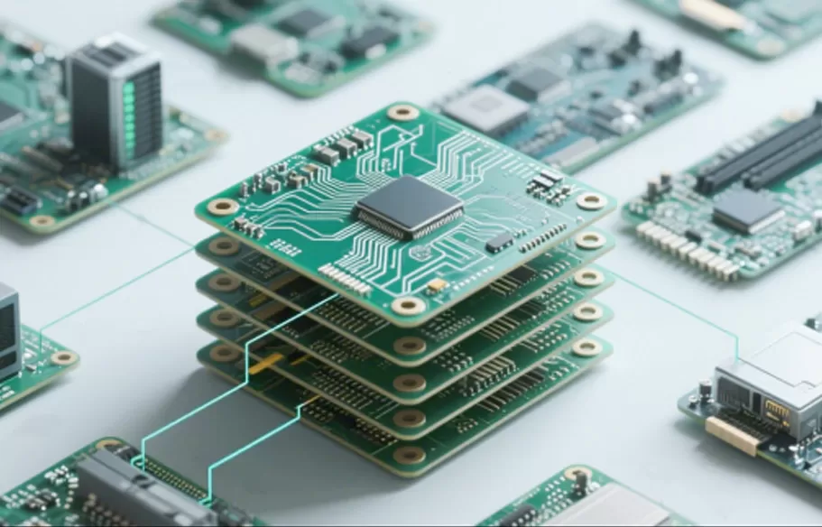 Un PCB multistrato è un circuito stampato composto da tre o più strati di rame laminati insieme a materiali isolanti e interconnessi tramite vias (fori passanti, vias ciechi e vias interrati).